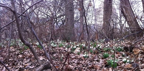 У січні цього року зима виявилась настільки теплою, що на Полуничних Полях в Центральному Парку стався приємний природний феномен: зацвіли підсніжники. 🙂