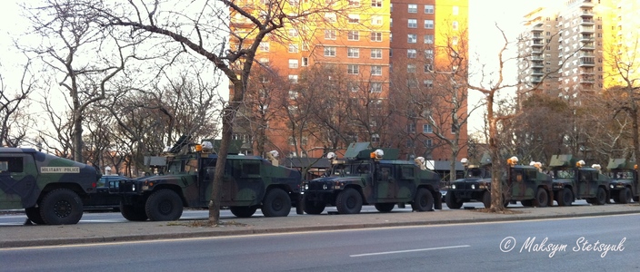 Оновлення, 9 листопада 2012: Сьогодні по будинкам в нашому районі ходили групи солдатів з членами волонтерських організацій і в кожній квартирі питали чи треба комусь їжа, вода, ліки тощо… Цілі вулиці були заставлені їхнім транспортом (див. фото вище).